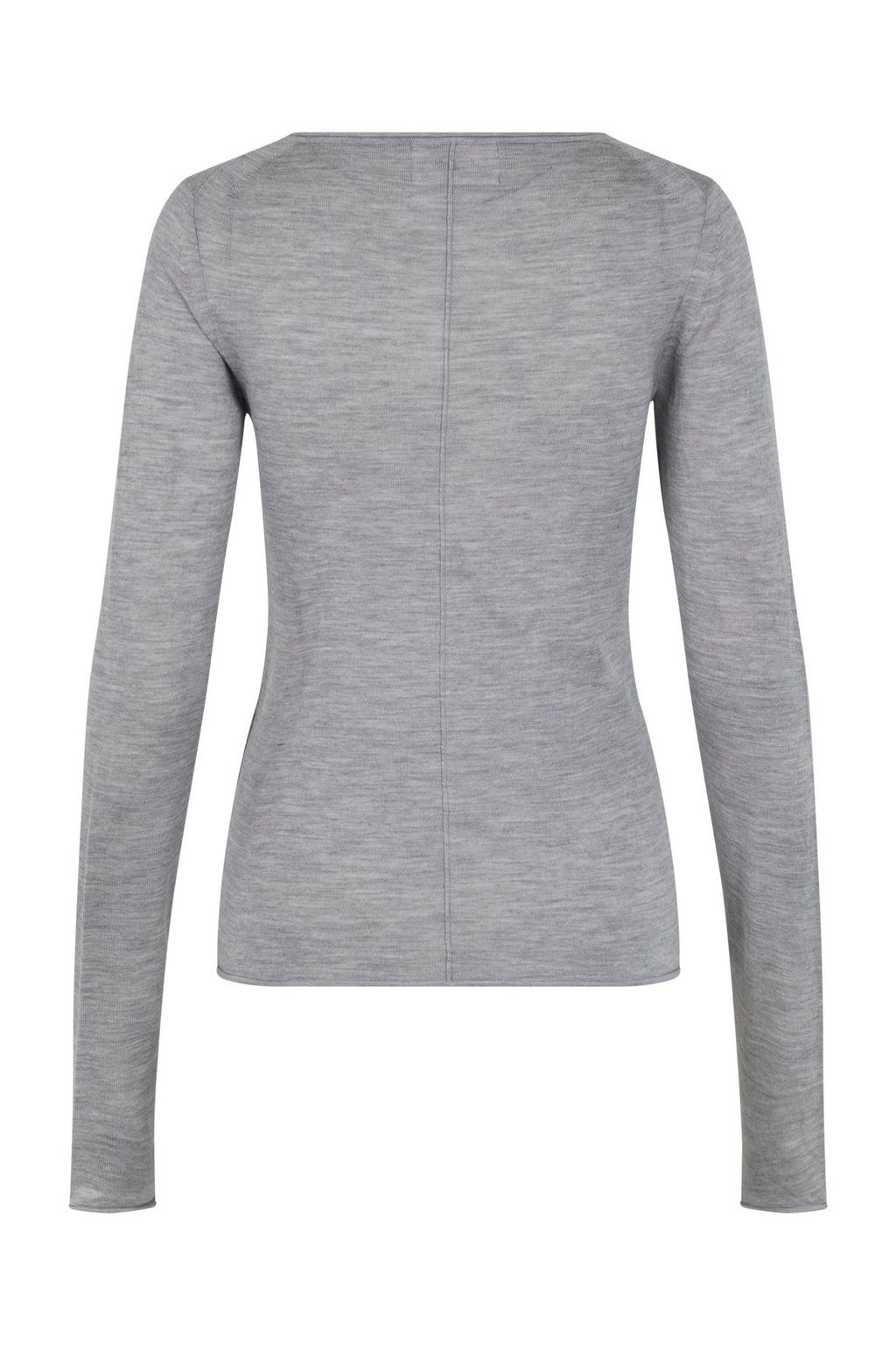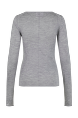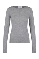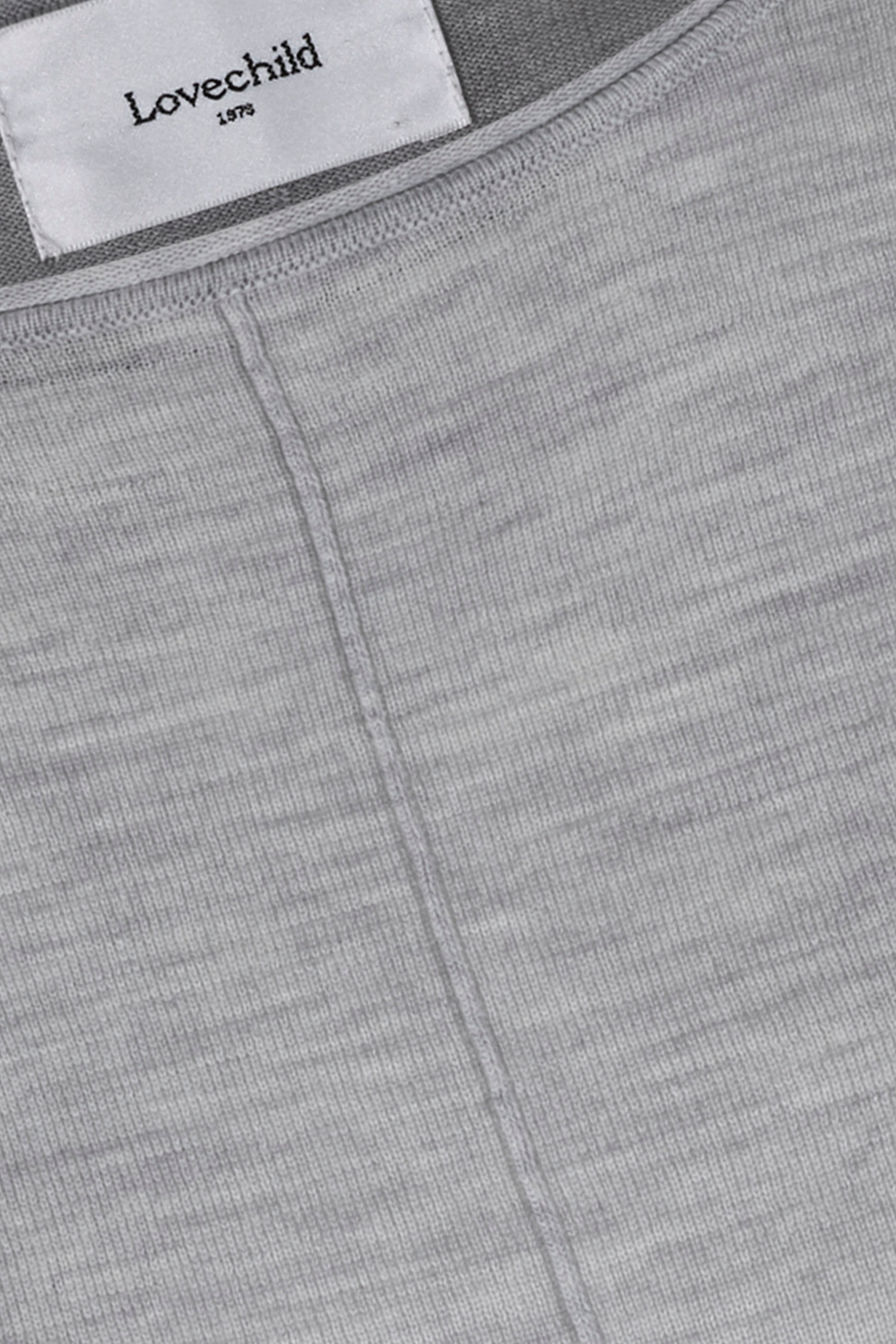 Beautiful slim fitting knitwear in a light merino wool with a boat neckline, long sleeves and rolled edges at the bottom. Lovechild1979 loge is finely embroidered on the front bottom. The look is feminine and elegant.