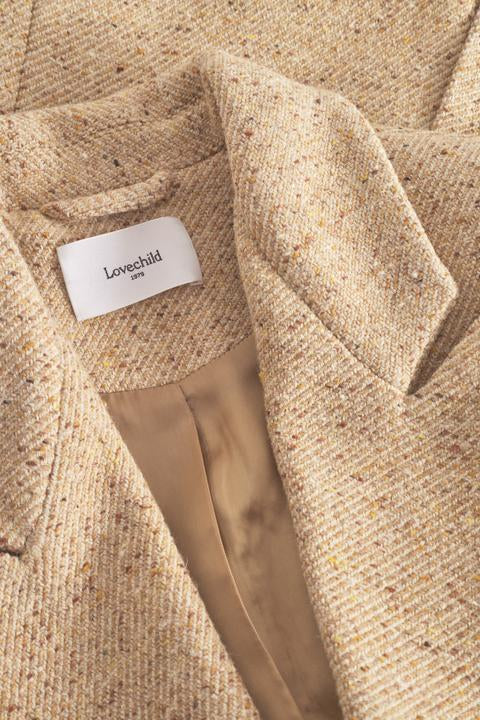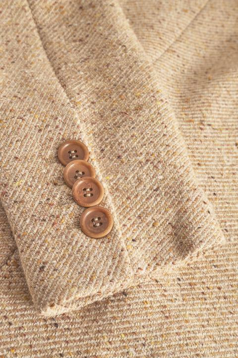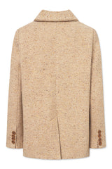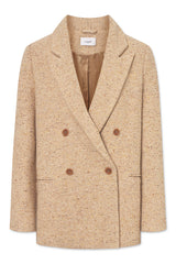 Classic oversized blazer. The blazer features pointed lapels, piped pockets, and a slit in the center back. The Arizona blazer is double-breasted and fastens with horn buttons.
