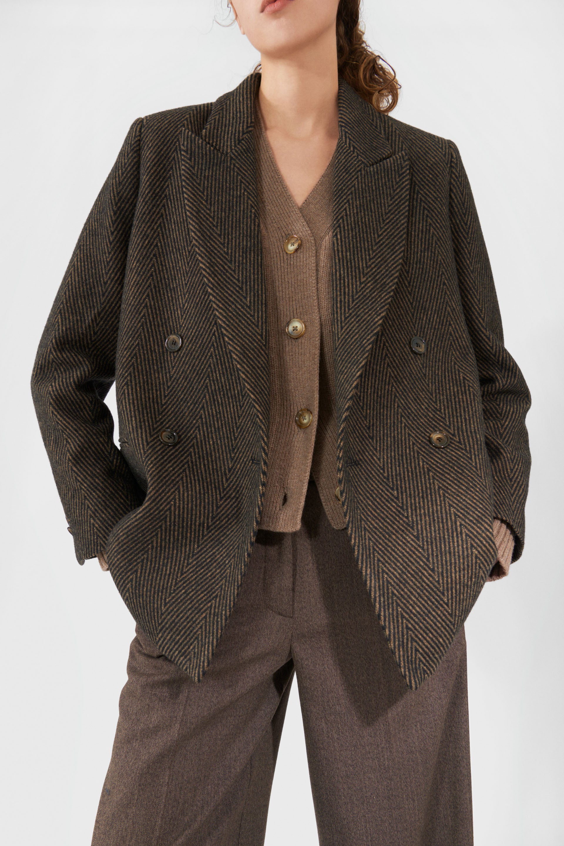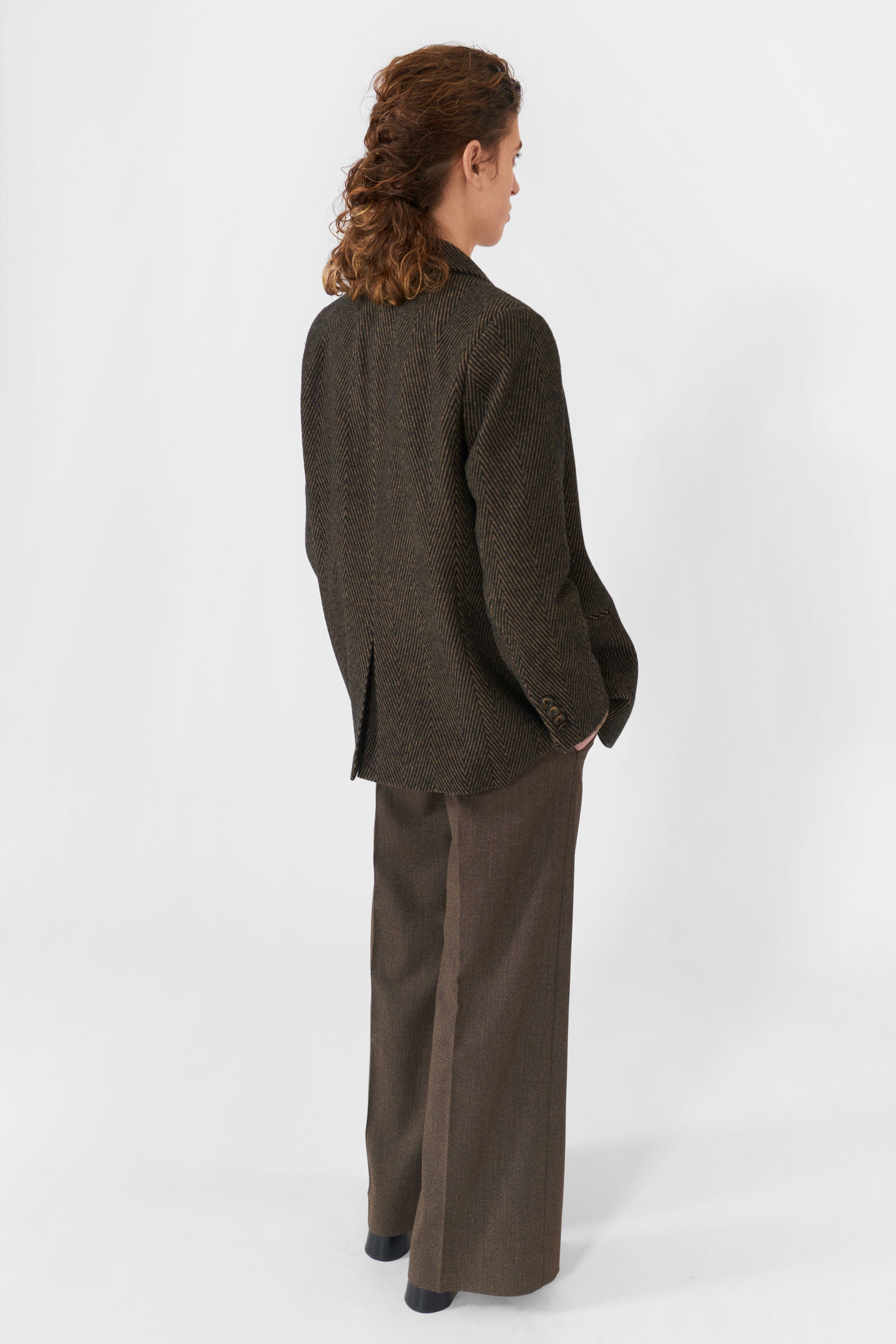 Classic oversized blazer in a lovely wool quality. The blazer features pointed lapels, piped pockets, and a slit in the middle back. The Arizona blazer is double-breasted and fastens with horn buttons.