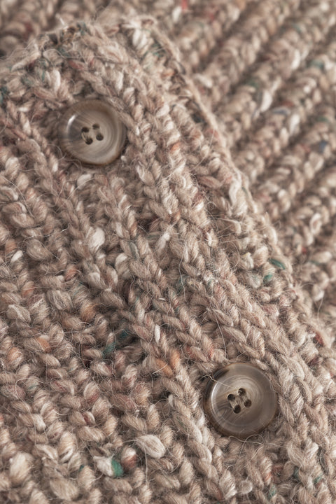 Knitted collar with button closure on the side, which can be folded down.
