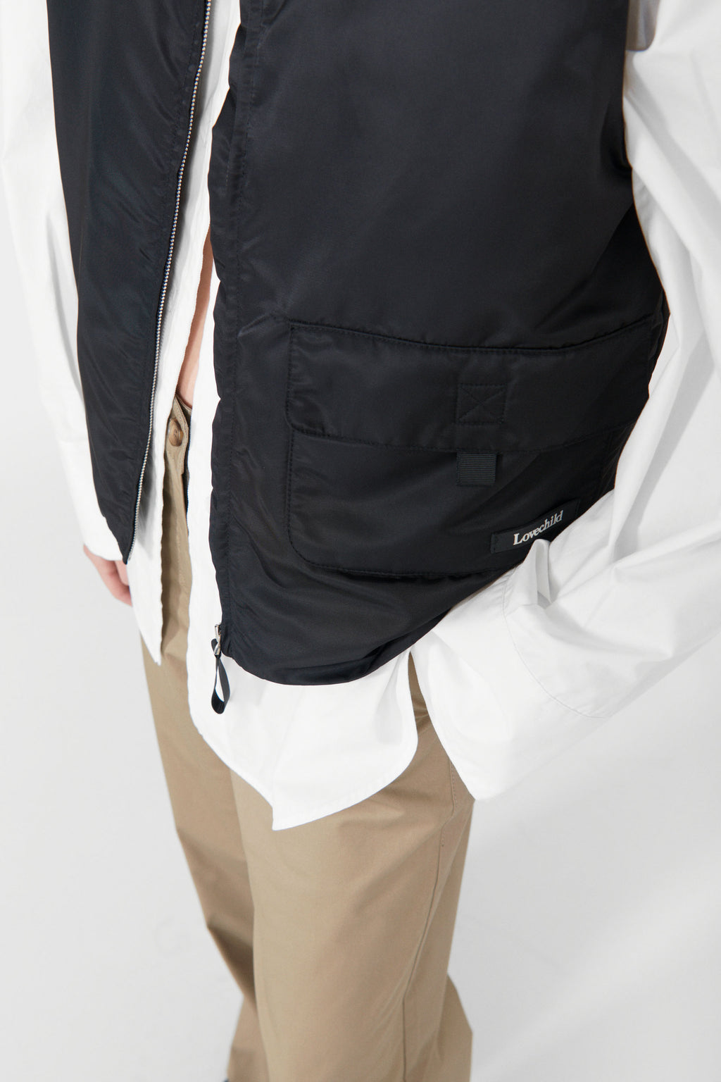 Vest in a heavy nylon quality with front zip and pocket with our iconic Lovechild 1979 logo in rubber attached. The vest is lined with thinsulate. The look is relaxed and spacious.