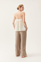 Strap top with empire cut in a delicious 3D-woven viscose - here in an off-white. Jody strap top has a ruched neckline and narrow adjustable straps.