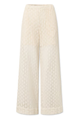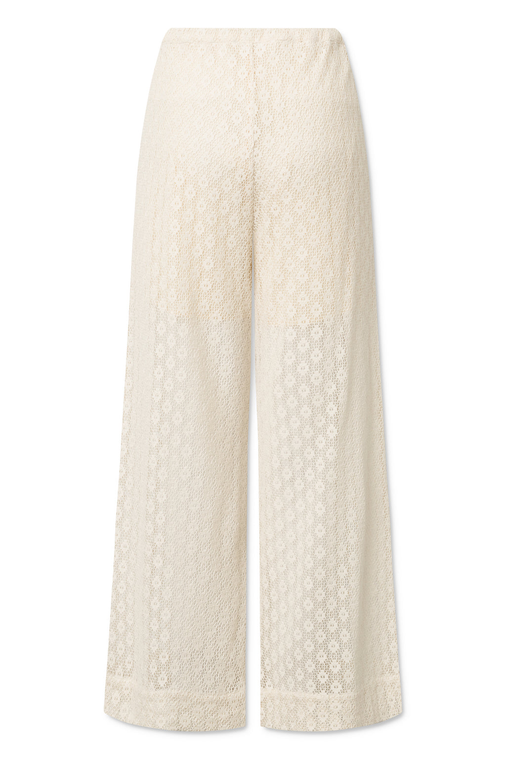 Lana trousers in a delicious 3D woven cotton quality with elastic and ties at the waist. The trousers have straight wide legs with a relaxed silhouette. The look is relaxed, loose and elegant.