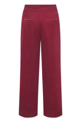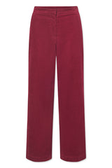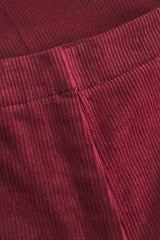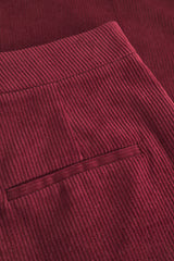 Loose corduroy pants, mid-rise and full length. Slanted pockets on the sides, tubular pockets on the back pocket. Press fold at the front and back.