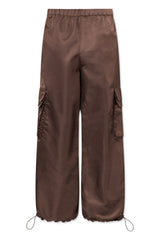 Sporty oversize nylon pants with elastic lace closure at the ankle. Cargo pockets on both pant legs, with our iconic Lovechild 1979 logo. The pants have elastic at the waist and straight legs.