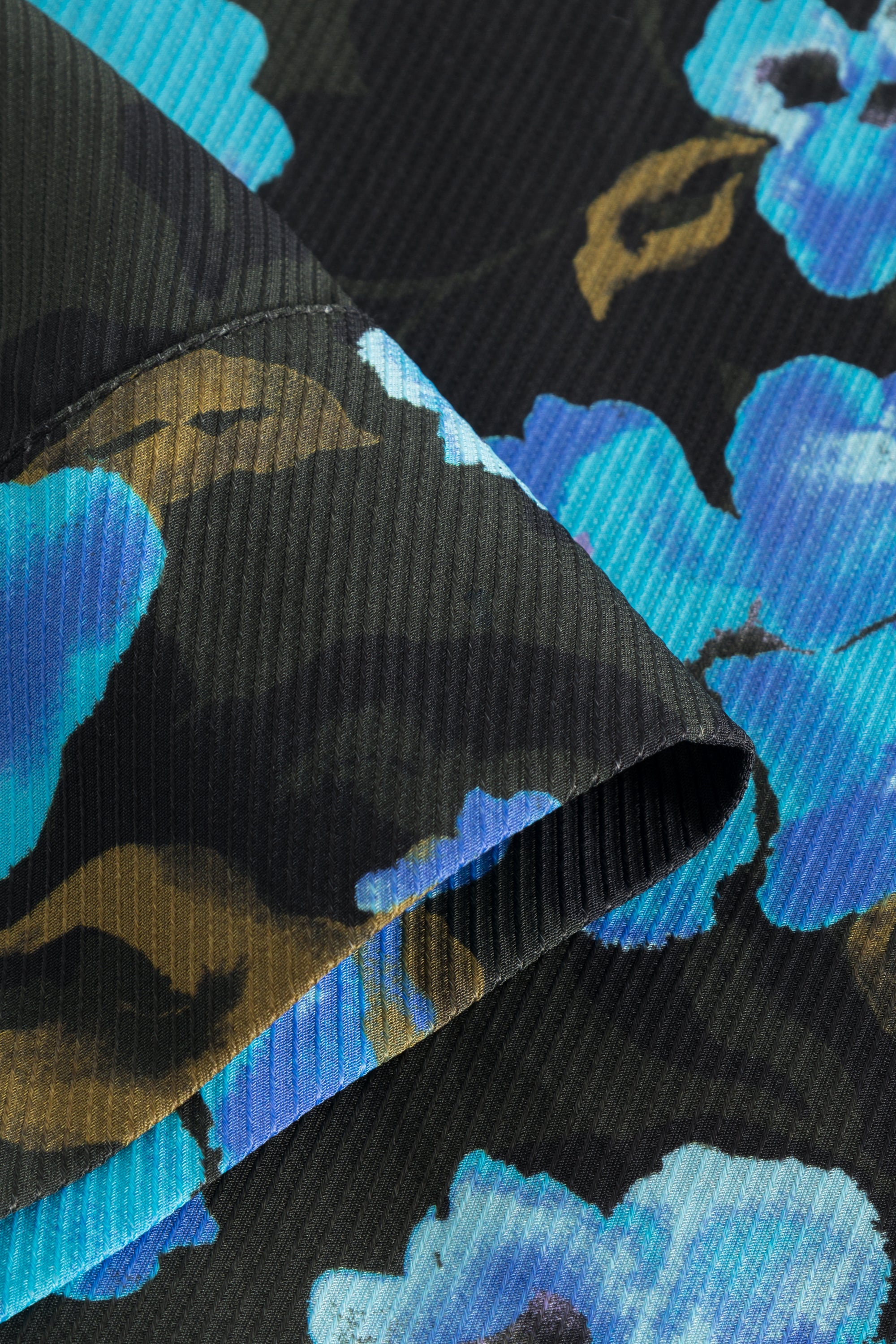 Mandy's shirt is in a lovely printed viscose with blue flowers on a black base. The fit is slightly square and relaxed. The sleeves are 3/4 length with good width and a 6cm wide cuff. In the front, the Mandy shirt has 2 attached chest pockets.