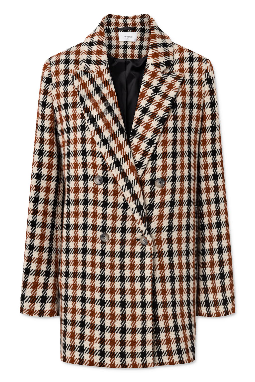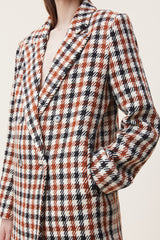 Classic oversized blazer - here in a delicious composition of wool and polyester/acrylic in a beautiful check in warm orange, black and off-white. The blazer has a pointed lapel and vertical welt pockets. Pukka blazer is double breasted, buttoned with horn buttons.