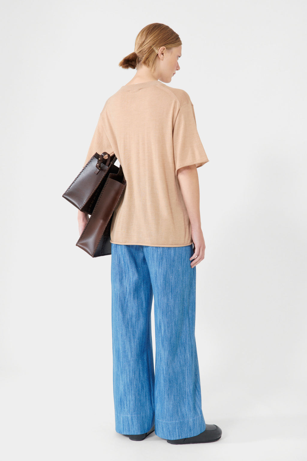 Oversized T-shirt with drop-down shoulders and ribbed neck. Lovechild 1979 logo embroidery on back. The look is oversized and relaxed.