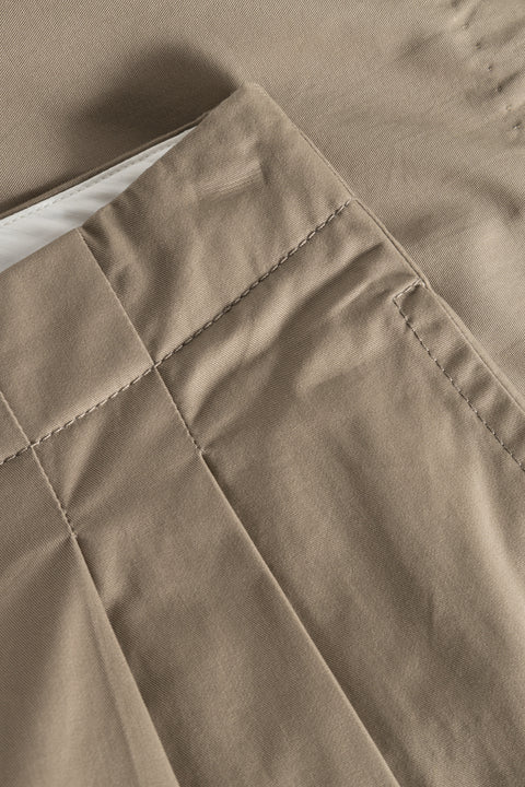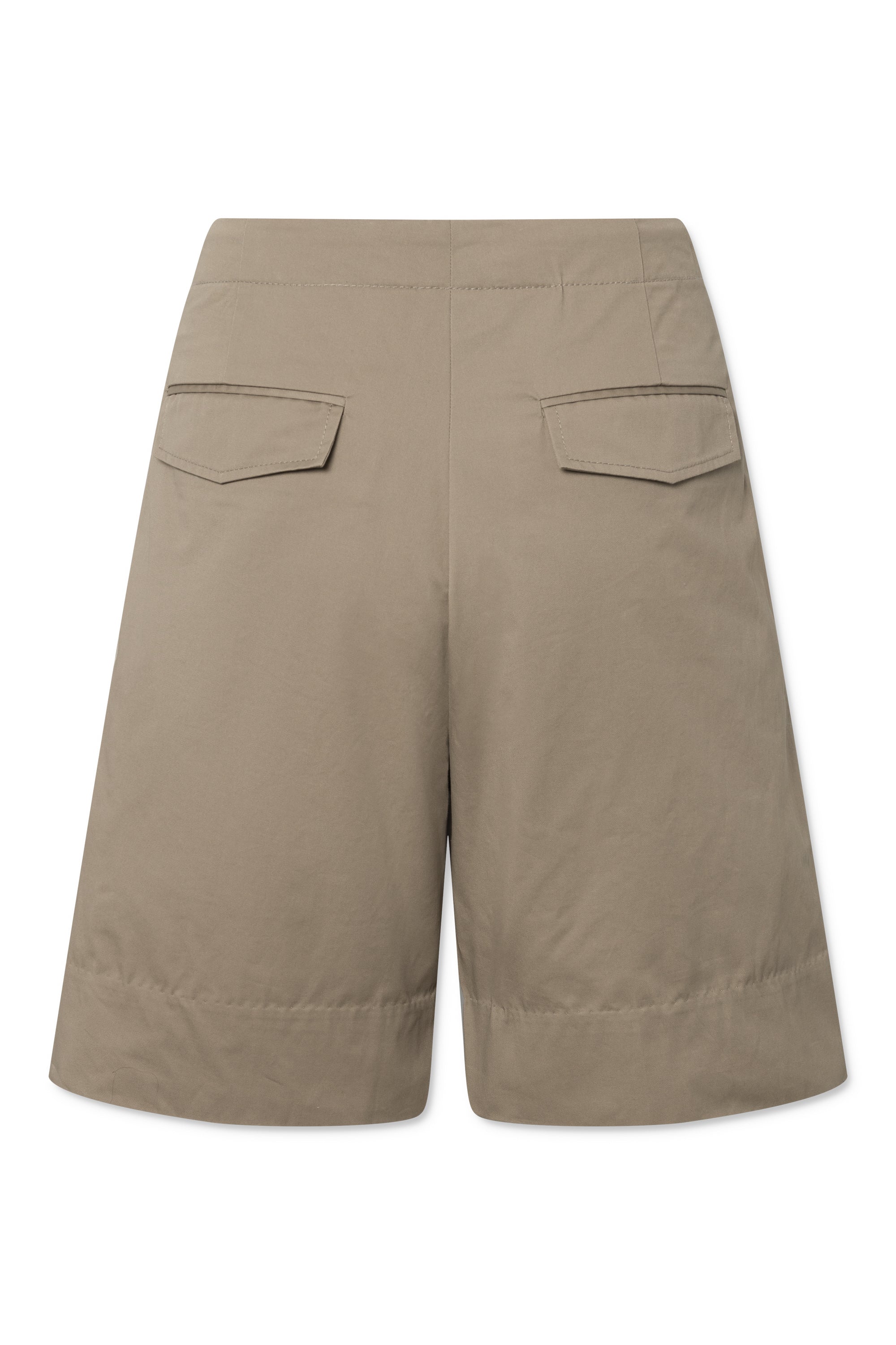 Mid-waisted shorts in a nice cotton quality with good leg width, two pleats at the front, patch pockets in the side seam and welted back pockets with pocket flaps. The look is relaxed and oversized.