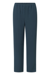 Lige bukser med fast lining, elastik i taljen i bagsiden, pressefolder og stiklommer foran i en herringbone kvalitet. Bukserne har foer indvendigt, som går under knæen og er lavet af viscose.