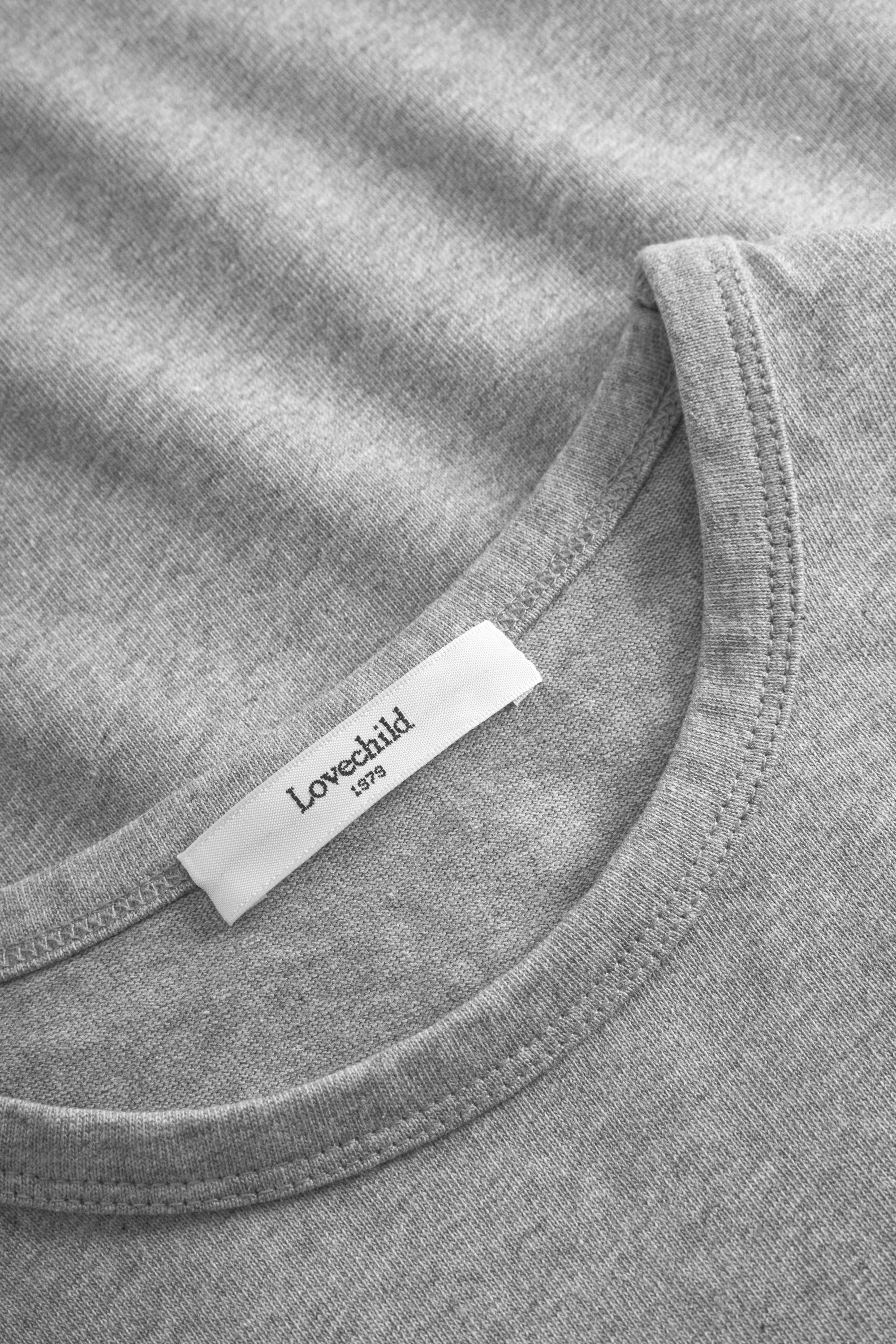 Klassisk oversized T-shirt med rund hals med rib, korte ærmer og Lovechild1979 logo i gummi foran i venstre side. Looket er simpelt, elegant og oversized.