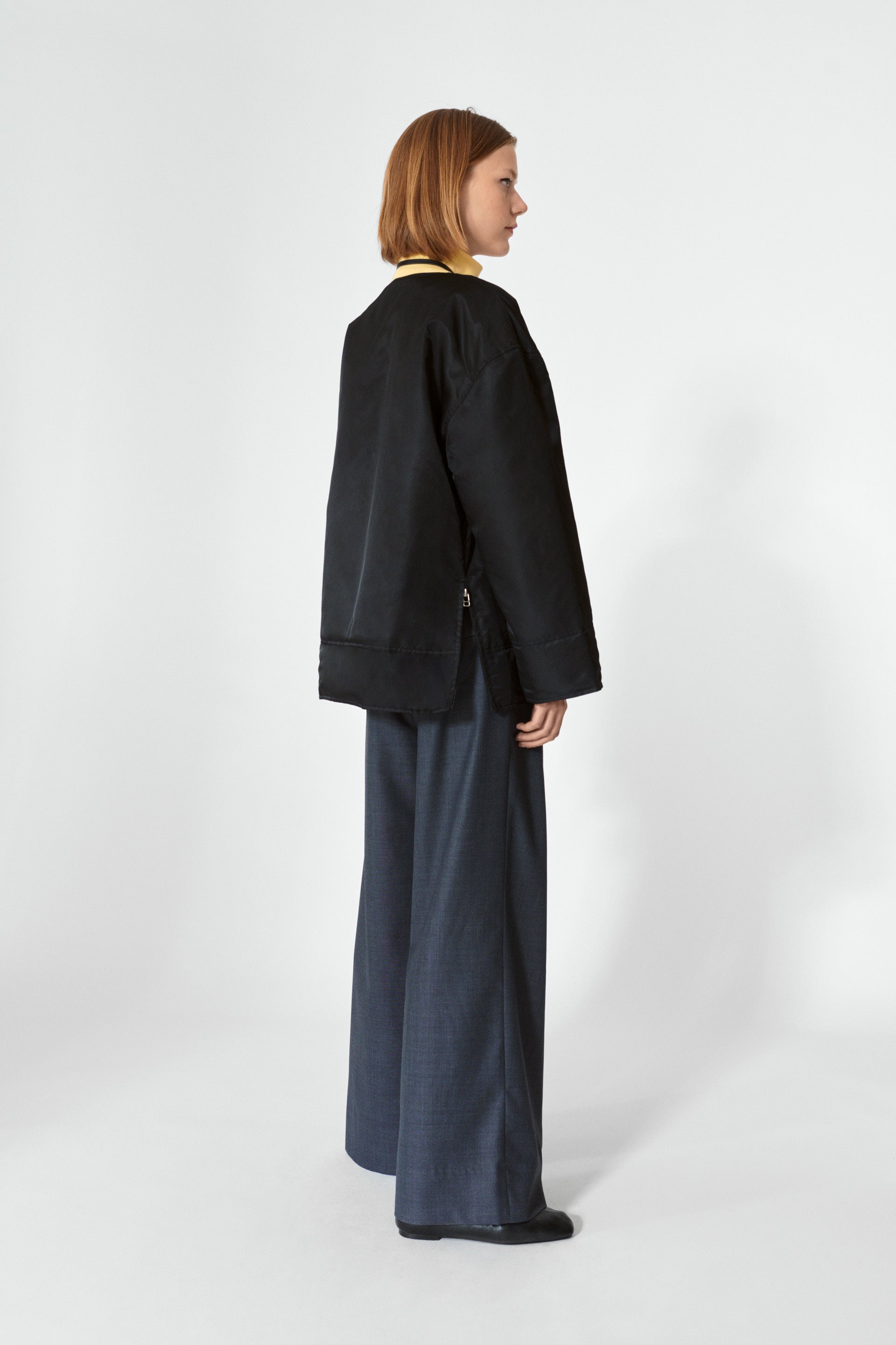 Bukser med stor vidde, læg foran og lommer i sidesømmen og baglommer med lommeklapper - her i en lækker uld/polyester kvalitet. Looket er oversized og afslappet.
