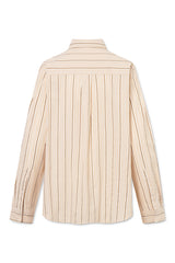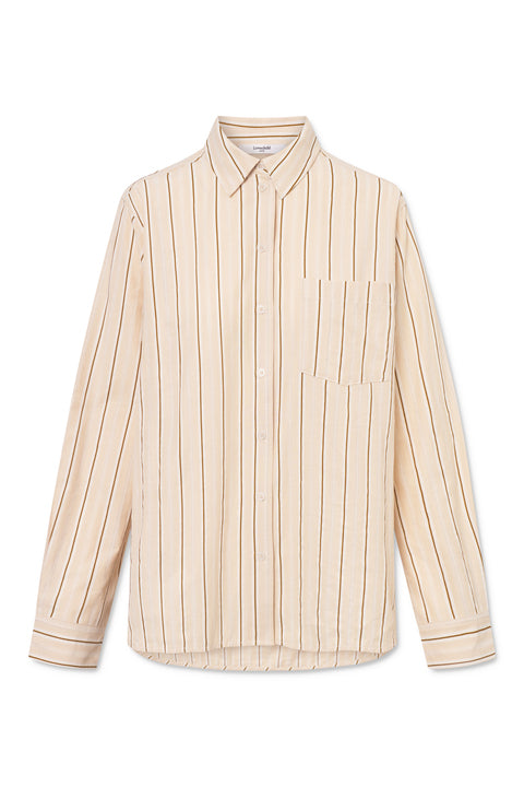 Boxy fit skjorte med droppede skuldre og en lomme ved brystet. Åbning CF med knapper. Manchet og slidser ved ærmerne med knaplukning. Plis ved rygstykket. Buende kant forneden med kile ved sidesømmene.