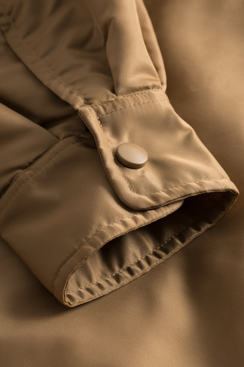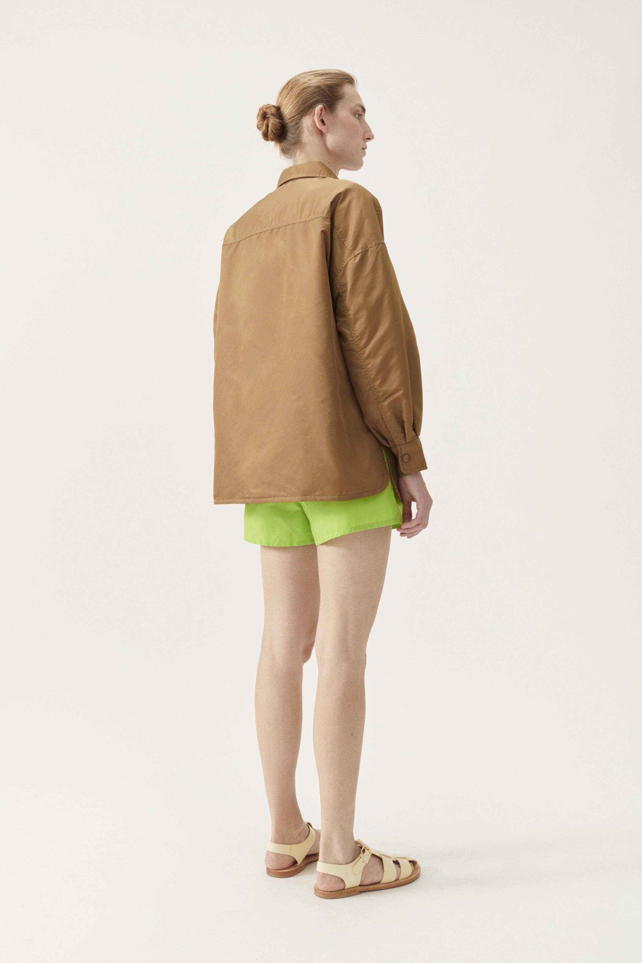Sporty oversize nylon jakke med presknapper. Jakken kan bruges udendørs på varmere dage eller som en overskjorte indendørs. Frida Jacket har en stor lomme, hvor det ikoniske Lovechild 1979 logo er påsat.
