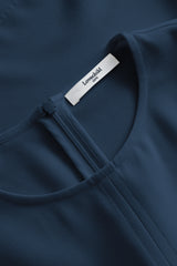 A-formet T-shirts bluse med stor volumen forneden, rund hals og 3/4 lange ærmer. Looket er løst og afslappet.
