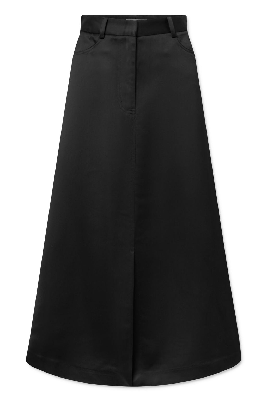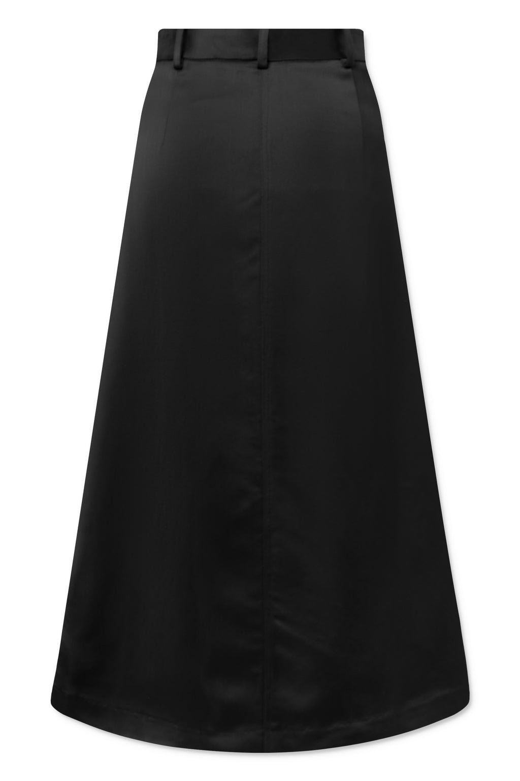 A-formet nederdel i en lækker viskosekvalitet med slids midt foran, rundede forlommer og bæltestropper. Looket er afslappet med normal pasform.