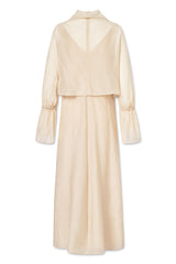 Gennemsigtig bolero med elastik på skuldrene og skæringslinje med en elastisk tunnel ved manchetterne, hvilket skaber volumen på ærmerne. Kjolen kan bruges med både med og uden jakken.