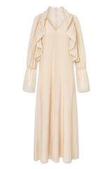 Maxi kjole med v-halsudskæring foran og bagpå. Kjolen er fuldt foret.